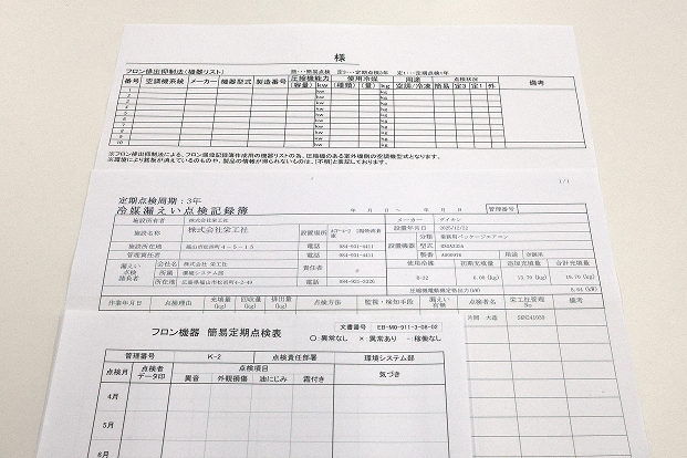 ご希望に応じ、漏えい点検記録簿・簡易点検記録表を作成します。